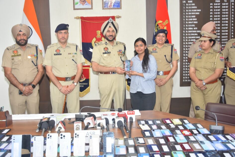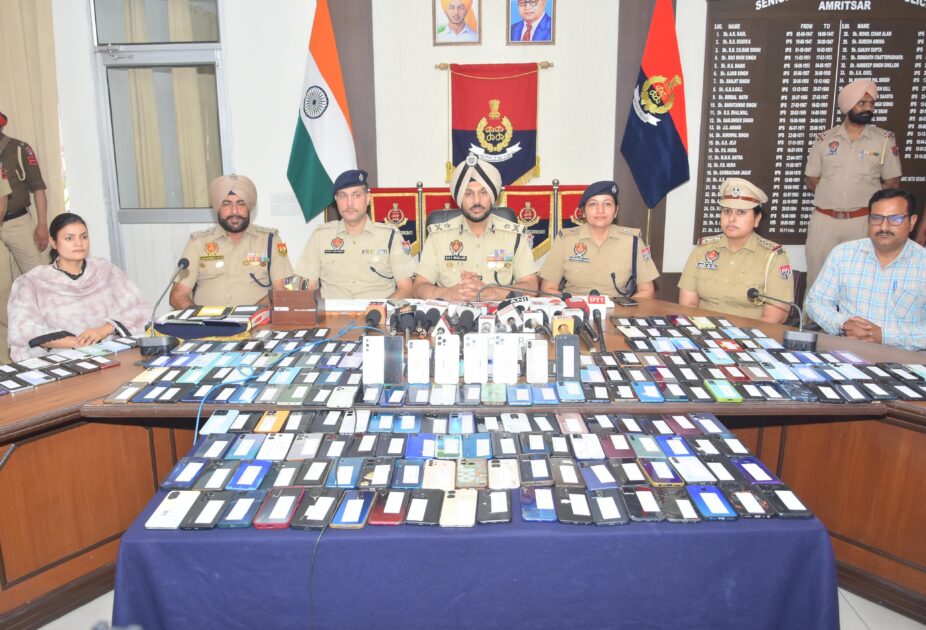ਪੁਲਿਸ ਕਮਿਸ਼ਨਰੇਟ ਅੰਮ੍ਰਿਤਸਰ ਦੇ ਬਾਈਬਰ ਕਰਾਈਮ ਵਿੰਗ ਤੇ ਵੱਖ ਵੱਖ ਸਬ ਡਵੀਜਨਾਂ ‘ਚ ਪੁਲਿਸ ਨੂੰ ਬਾਹਰਲੇ ਰਾਜਾਂ ਤੇ ਸੂਬੇ ਦੇ ਵੱਖ ਵੱਖ ਜ਼ਿਲ੍ਹਿਆਂ ‘ਚ ਗੁੰਮ ਹੋਏ ਮਹਿੰਗੇ ਮੁੱਲ ਦੇ ਮੋਬਾਇਲ ਫੋਨ ਲੱਭਕੇ ਉਨਾਂ ਦੇ ਅਸਲ ਮਾਲਕਾਂ ਦਾ ਪਤਾ ਲਗਾਕੇ ਪੁਲਿਸ ਲਾਈਨ ਅੰਮ੍ਰਿਤਸਰ ‘ਚ ਉਨਾਂ ਨੂੰ ਸੌਪਦਿਆ ਪੁਲਿਸ ਕਮਿਸ਼ਨਰ ਸ: ਗਰੁਪ੍ਰੀਤ ਸਿੰਘ ਭੁੱਲਰ ਨੇ ਦੱਸਿਆ ਕਿ ਇਹ ਫੋਨ ਰਾਜਸਥਾਨ, ਉੱਤਰ ਪ੍ਰਦੇਸ਼, ਉਤਰਾਖੰਡ ਅਤੇ ਪੰਜਾਬ ਦੇ ਜ਼ਿਲ੍ਹਿਆਂ ਜਿਵੇਂ ਕਿ ਲੁਧਿਆਣਾ, ਜਲੰਧਰ ਅਤੇ ਅੰਮ੍ਰਿਤਸਰ ਦਿਹਾਤੀ ਤੋਂ ਬਰਾਮਦ ਕੀਤੇ ਗਏ ਸਨ, ਅਤੇ ਹੁਣ ਉਨ੍ਹਾਂ ਦੇ ਮਾਲਕਾਂ ਨੂੰ ਵਾਪਸ ਕਰ ਦਿੱਤੇ ਗਏ ਹਨ। ਇਸ ਤੋਂ ਪਹਿਲਾਂ, ਪਹਿਲੇ ਪੜਾਅ ਵਿੱਚ 100 ਮੋਬਾਈਲ ਫੋਨ ਅਤੇ ਦੂਜੇ ਪੜਾਅ ਵਿੱਚ 200 ਮੋਬਾਈਲ ਫੋਨ ਵਾਪਸ ਕੀਤੇ ਗਏ ਸਨ, ਜਦੋਂ ਕਿ ਹੁਣ 400 ਮੋਬਾਈਲ ਫੋਨ ਸਫਲਤਾਪੂਰਵਕ ਲੱਭੇ ਗਏ ਹਨ ਅਤੇ ਤੀਜੇ ਪੜਾਅ ਵਿੱਚ ਵਾਪਸ ਕੀਤੇ ਗਏ ਹਨ।