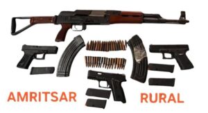 ਛਾਪੇਮਾਰੀ ਦੌਰਾਨ, ਪੁਲਿਸ ਨੇ ਦੋ ਨੌਜਵਾਨਾਂ ਨੂੰ ਗ੍ਰਿਫ਼ਤਾਰ ਕੀਤਾ। ਤਲਾਸ਼ੀ ਦੌਰਾਨ, ਉਨ੍ਹਾਂ ਨੂੰ ਇੱਕ AK-47 ਰਾਈਫਲ, ਦੋ ਮੈਗਜ਼ੀਨ, 36 ਜ਼ਿੰਦਾ ਕਾਰਤੂਸ ਅਤੇ ਤਿੰਨ ਆਧੁਨਿਕ 9mm ਗਲੌਕ ਪਿਸਤੌਲ ਮਿਲੇ। ਪੁਲਿਸ ਅਨੁਸਾਰ, ਇਹ ਹਥਿਆਰ ਪਾਕਿਸਤਾਨ ਤੋਂ ਡਰੋਨ ਰਾਹੀਂ ਭਾਰਤ ਭੇਜੇ ਗਏ ਸਨ। ਅੰਮ੍ਰਿਤਸਰ ਦਿਹਾਤੀ ਪੁਲਿਸ ਦੀ ਇਸ ਕਾਰਵਾਈ ਨੇ ਇੱਕ ਵੱਡੀ ਸਾਜ਼ਿਸ਼ ਨੂੰ ਨਾਕਾਮ ਕਰ ਦਿੱਤਾ ਹੈ।